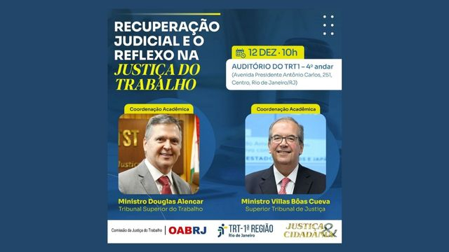 A Revista Justiça & Cidadania realiza, no próximo dia 12 de dezembro, às 10h, mais uma edição do projeto “Conversa com o Judiciário”, que terá como tema “Recuperação Judicial e os reflexos na Justiça do Trabalho”.