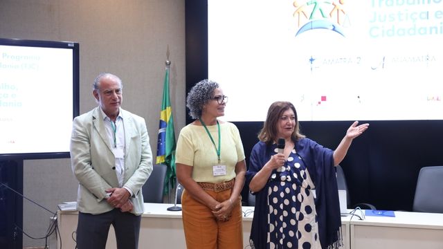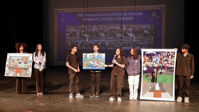 A diretora de Cidadania e Direitos Humanos, Roberta Santos, esteve presente à culminância, juntamente com o presidente Diego Massi, o juiz Thomaz Werneck, a coordenadora nacional do Programa TJC, juíza Rosemeire Lopes Fernandes; a vice-prefeita de Barueri-SP, Cláudia Aparecida Afonso Marques; e a secretária-adjunta de Educação, Vânia dos Santos. A culminância do Programa Trabalho Justiça e Cidadania, realizada no Teatro Praça das Artes, Jardim dos Camargos, Barueri-SP, encerrou o 18º Encontro Nacional.